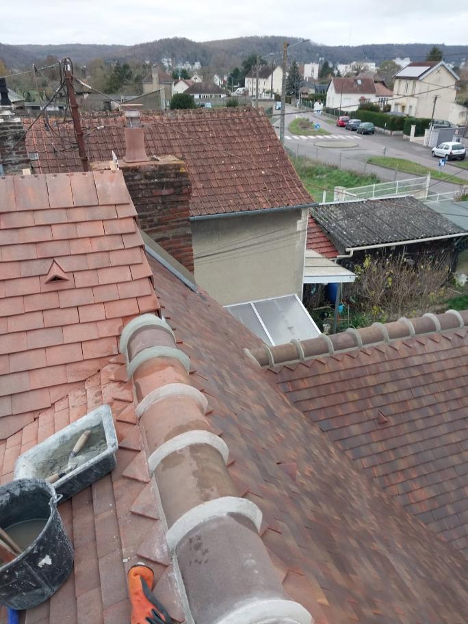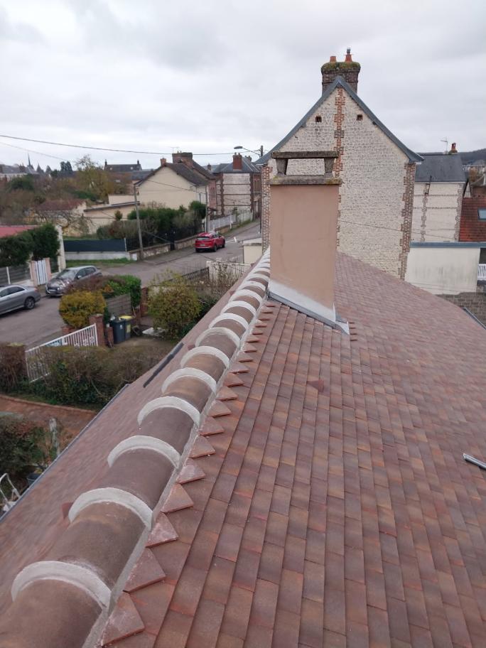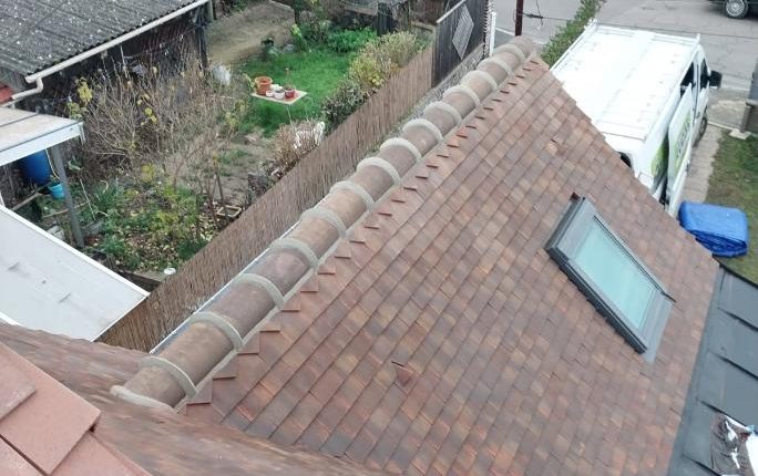 Faîtage scellé au ciment avec embarure crête de coq